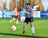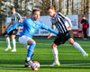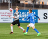 KR sækir upp hægri vænginn. Ægir Jarl í baráttu við Örvar Loga sem velur þann kost að setja boltann afturfyrir og á KR því horn.