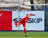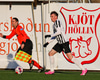 Guy Smit aftur mættur langt út úr markinu eftir sendingu yfir varnarlínu KR. Varnar nú því að Helgi Fróði komist í boltann.