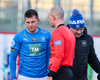 Eða hvort hann hafi lent í samstuði við Emil Atla sem liggur á vellinum. Emil stendur upp en haltrar af velli og þarf aðhlynningu.