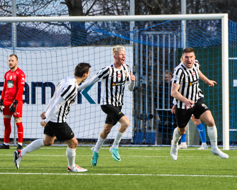 Hornspyna frá hægri berst yfir á fjærstöng þar sem Theodór Elmar rís hæst og skallar boltann aftur fyrir markið. Þar er Axel því sem næst óvaldaður og á ekki í vandræðum með að reka ennið í boltann og koma honum í netið.