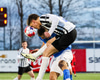 Fer full groddarlega í tæklingu á eigin vallarhelmingi og uppsker fyrir það gult spjald.