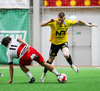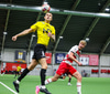 Hinrik Harðarson kassar boltann laglega niður í teignum og nær skotinu en boltinn beint á Arnar í markinu.
