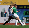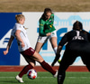 Vigdís Lilja nær næstum til boltans á stórhættulegum stað inn í teignum en Gwen Mummert er á undan og kemur honum frá.