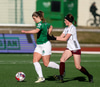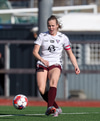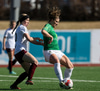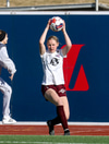 Gwen Mummert með ágætis sendingu inn fyrir en Telma kemur út á móti og handsamar boltann.