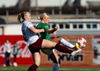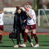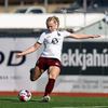 Aldís María fær boltann af miklum krafti í hausinn af stuttu færi. Liggur eftir en vonandi er þetta ekkert alvarlegt.