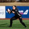 Áslaug Munda tekur strax á rás upp vinstri vænginn. Hraðinn hefur ekkert minnkað hjá henni.