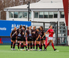 Fanney grípur hornspyrnu en hún fær högg í kjölfarið. Hún stendur þó upp og heldur áfram.