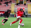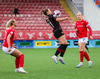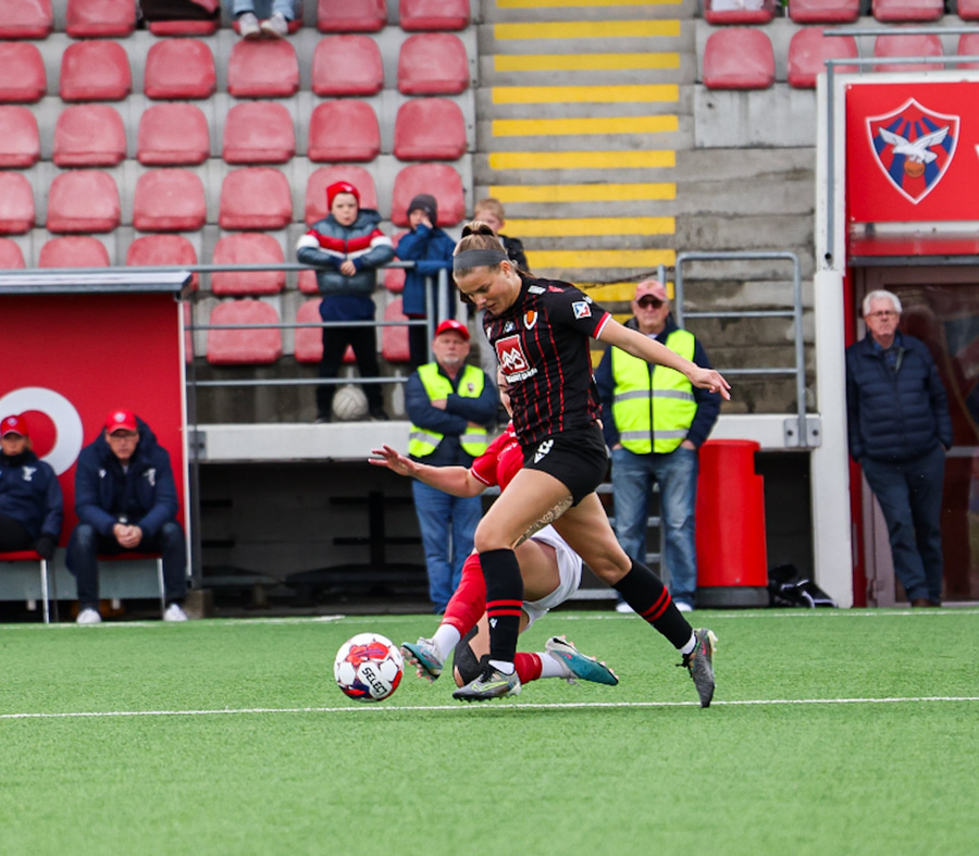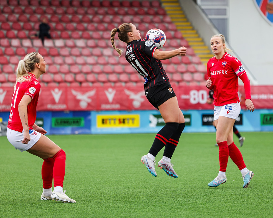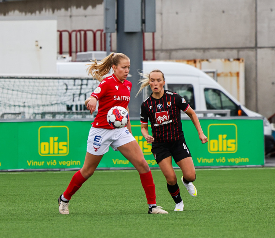 Fanndís fer hér illa með Emmu Steinsen og reynir skot að marki úr frábæru færi. Reynir einhvern veginn að skjóta yfir Kötlu í markinu, sem blakar honum yfir.