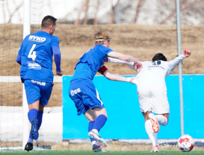 Abdeen Abdul skoraði bæði mörk heimamanna í fyrri hálfleik. Abdul er 29 ára gamall írskur sóknarmaður og hefur spilað víðsvegar um heiminn. Hann lék síðast með Penang í Malasíu. Þar á undan spilaði hann með KF Skënderbeu í Albaníu þar sem hann skoraði 14 mörk í 36 leikjum.