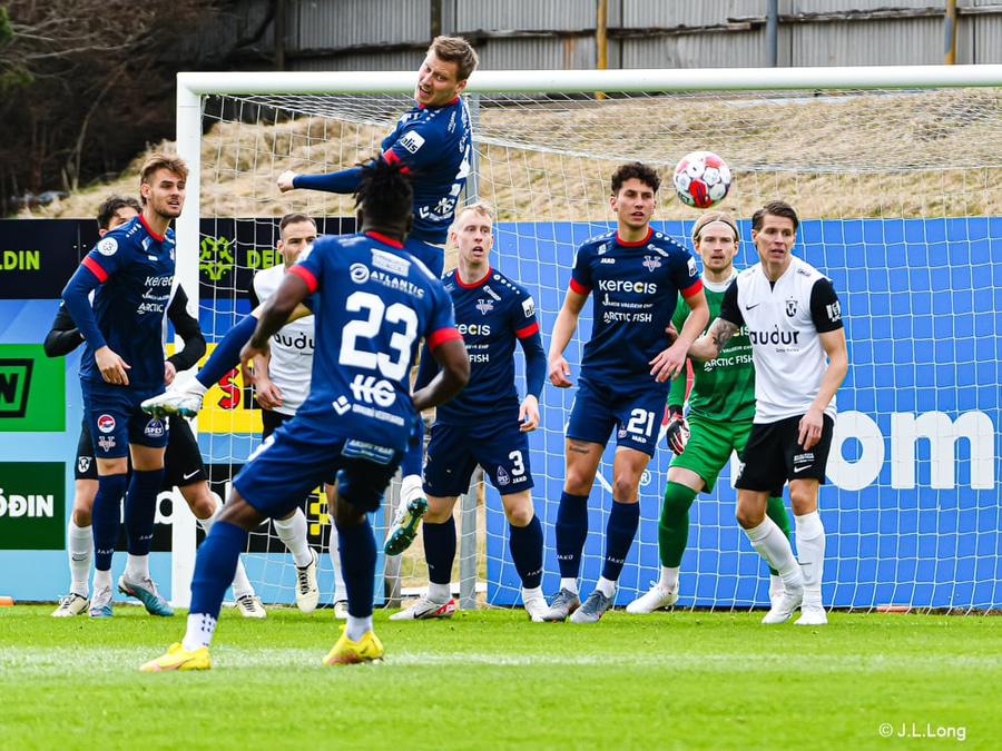 Þá fer þetta af stað og það eru Vestra menn sem hafa upphafssparkið.