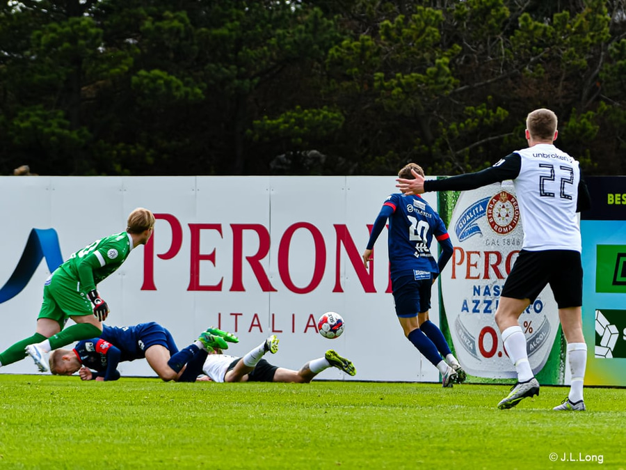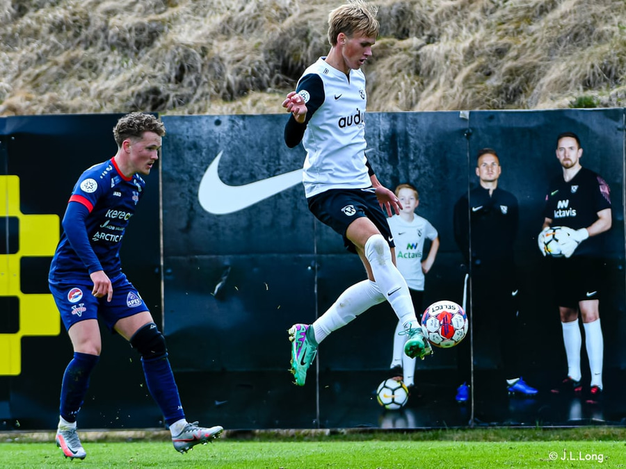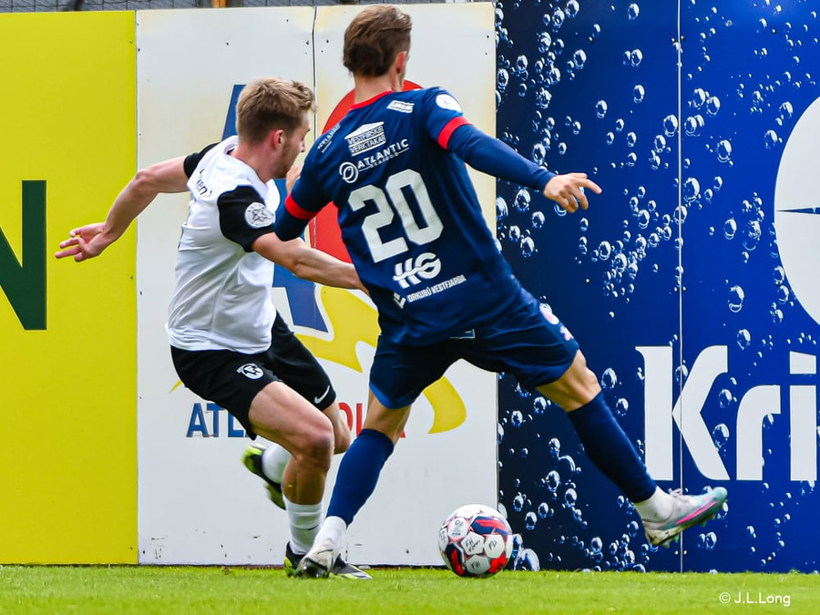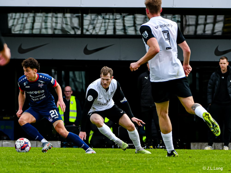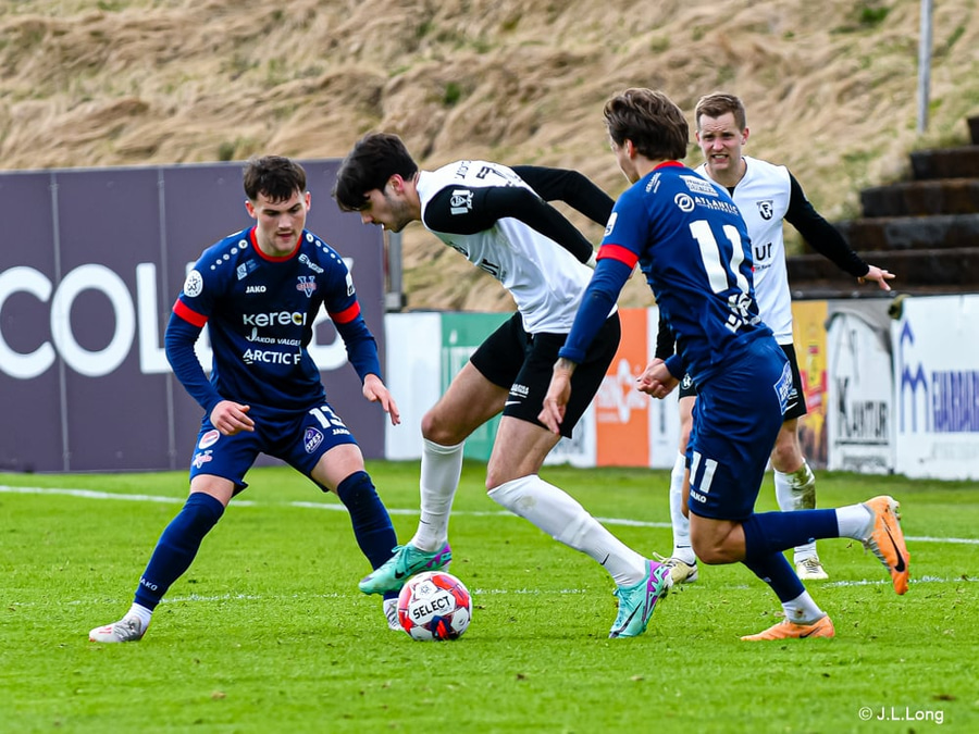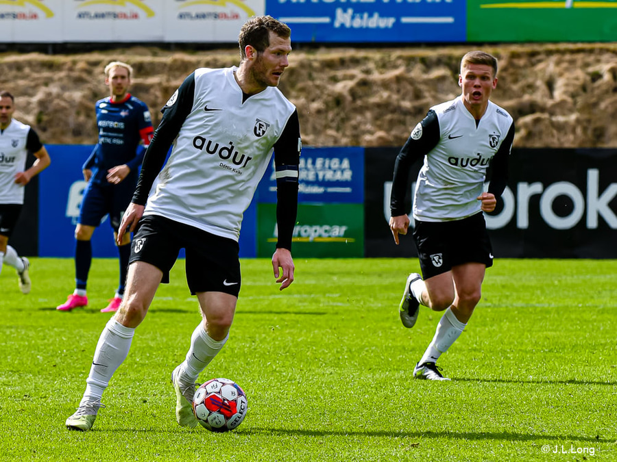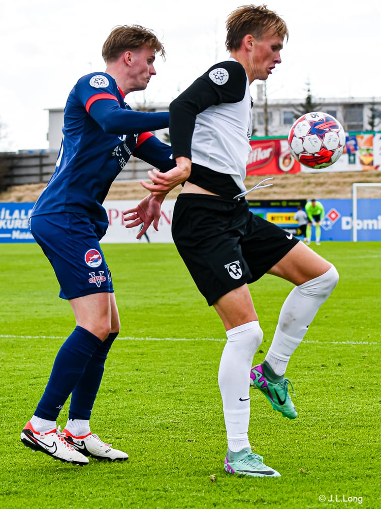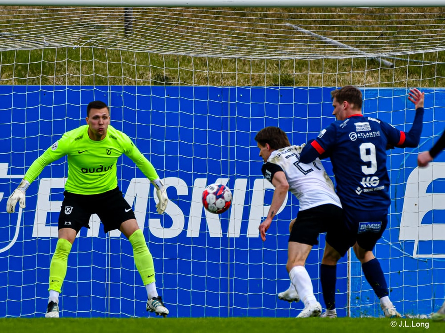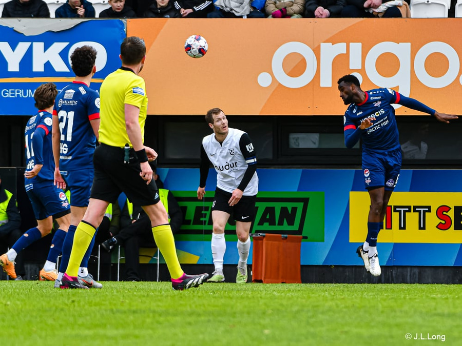 Finnur Orri kemur með langan bolta fram og Ástbjörn er fljótastur að bregðast við. Hann skallar boltan áfram á Sigurð sem tekur skotið viðstöðulaust beint í fjærhornið. Frábært slútt!