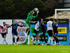 FH-ingar setja boltan inn í teig en gestirnir skalla frá. Þá lúrir Kjartan fyrir utan teig og lætur vaða en William ver vel!