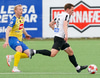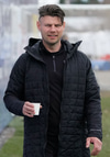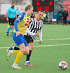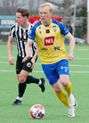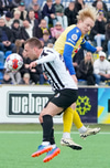Luke Rae kemst upp að endamörkum á vinstri kantinum og reynir fyrirgjöf en Steinþór Már grípur boltann auðveldlega.