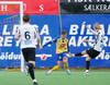 Hrannar setur boltann inn fyrir á Ásgeir sem að hamrar boltanum í átt að marki, en Smit er vandanum vaxinn og heldur skotinu.