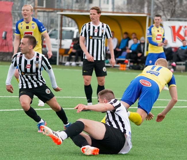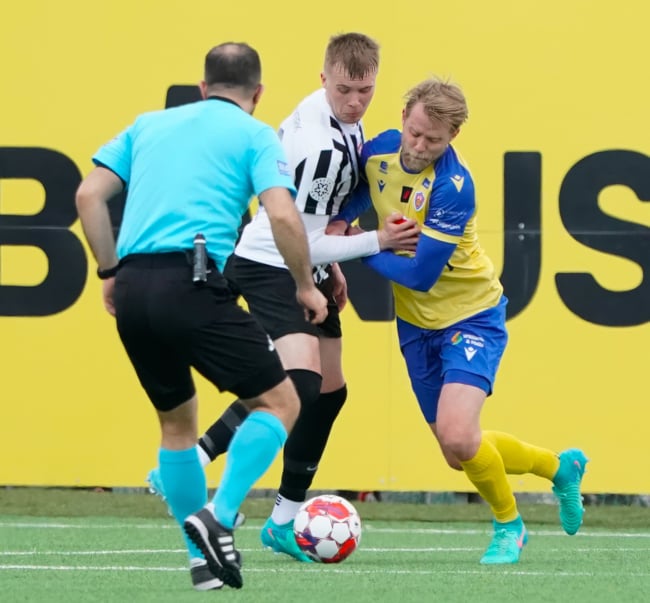 Twana Khalid gefur sér góðan tíma í að áminna Guy Smit að drífa sig að taka aukaspyrnuna, en rökréttast hefði líklega verið að veifa gula spjaldinu bara strax og koma leiknum fljótt af stað aftur.