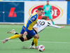 Aftur fær Hallgrímur boltann úti vinstra megin og reynir að taka Rúrik á. Í þetta skiptið missir hann boltann aðeins of langt frá sér og KR fær markspyrnu.