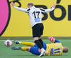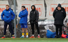 Fór upp í skallaeinvígi úti vinstra megin og hafa lent eitthvað saman. Virðast þó báðir geta haldið leik áfram.