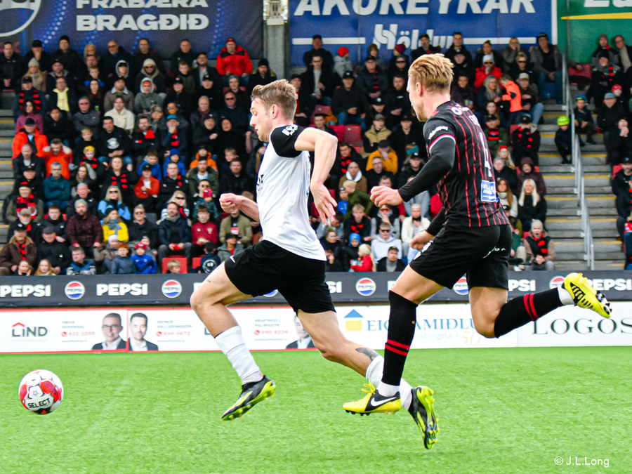Helgi Guðjóns allt í einu í dauðafæri og kemur honum undir Sindra, en Ástbjörn bjargar óaðfinnanlega!