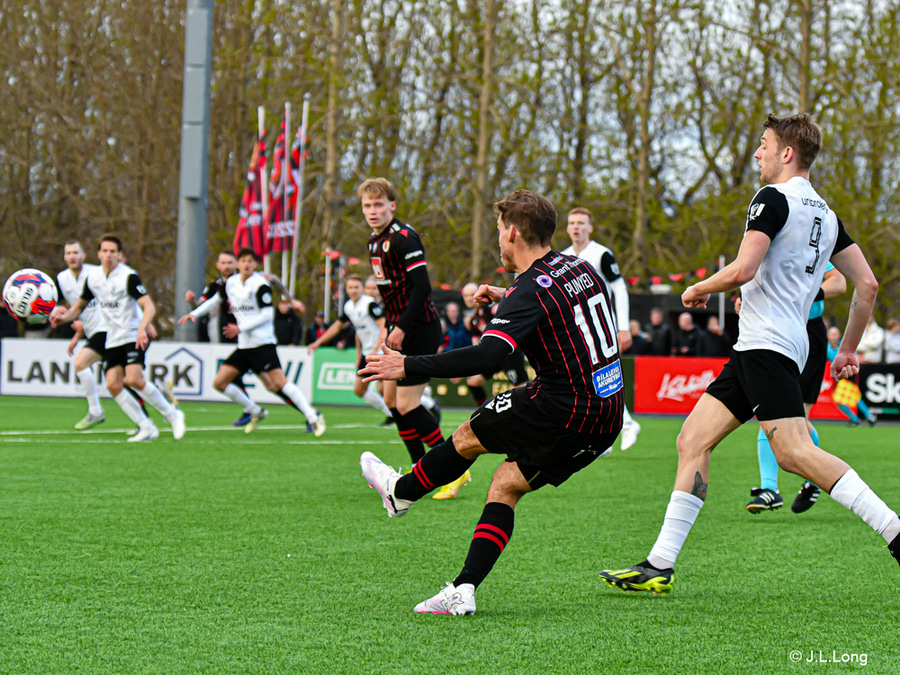 Karl Friðleifur með frábæra aukspyrnu og Helgi - ofurvaramaðurinn - mætir til að stanga boltann í netið.