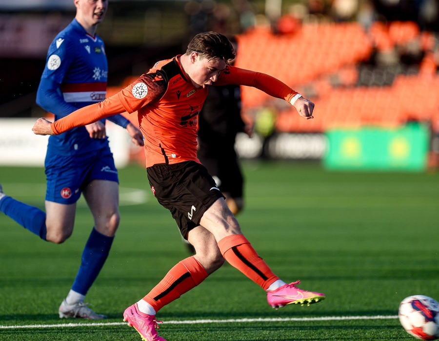 Þórður Gunnar á frábæra sendingu innfyrir á Matthias sem sleppir aleinn í gegn og reynir að fara framhjá Stefáni en nær því ekki. Matthías rennir boltanum til hliðar á Þórð Gunnar sem kláraði í netið.