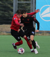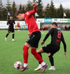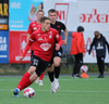 Elmar Kári nær að gera Birki að smá fífli með sínum töktum. Birkir tekur hann þá bara niður.