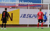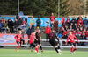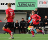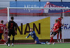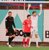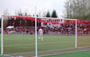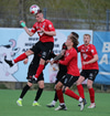 Boltinn kemur inn í teig á fjærstöng og hann skoppar eitthvað af mönnum. Hann dettur svo fyrir einn heimamanninn í miðjum teignum sem tekur skotið en yfir markið.