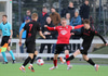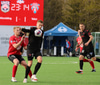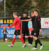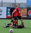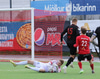 Úr hornspyrnunni spila heimamenn svo vel saman við hlið teigsins og koma boltanum aftur á Aron Jó (Aft) sem er í dauðadæri en skotið aftur í varnarmann og framhjá.