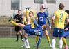 Hraustleg tækling úti við hliðarlínu. Þórður rífur upp spjaldið.