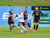 Freyja fær boltann úti hægra meginn og á skot á mark. Aldís ver í marki FH-inga
