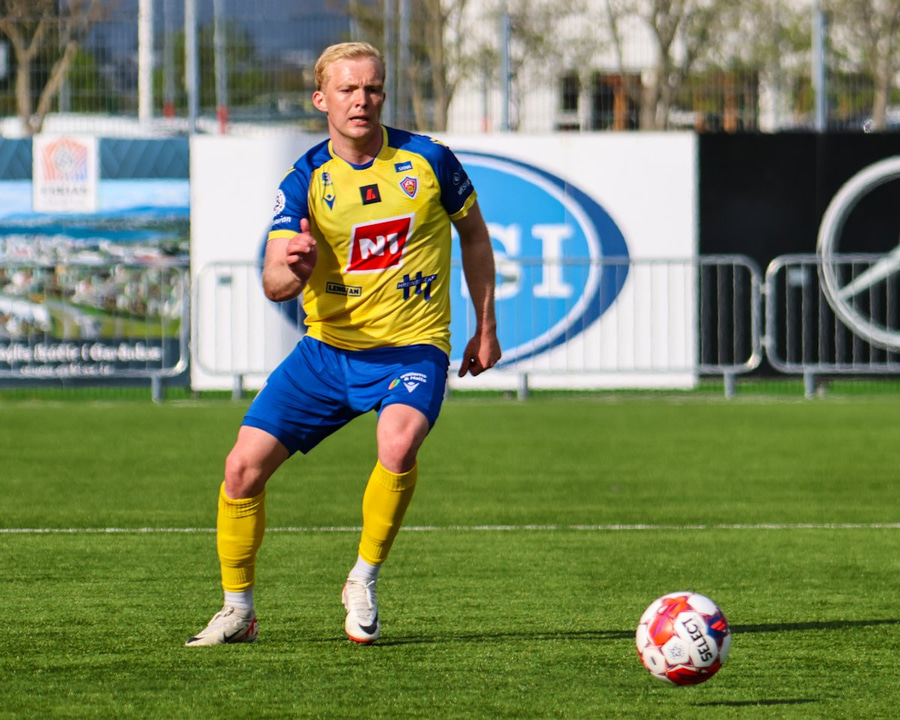 Daníel rífur sig frá einum varnarmanninum og tekur skotið fyrir utan teig en boltinn flýgur himin hátt yfir.