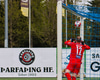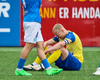 Kári lendir eitthvað illa á auglýsinga skyltunum og leikmenn fljótir að rjúka af stað til að aðstoða hann.