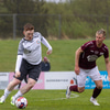 Jóhann á skot langt utan af velli en það er nær því að fara í innkast heldur en á markið