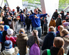 Halla Tómasdóttir, nýkjörinn forseti Íslands, er auðvitað mætt í heiðursstúkuna ásamt eiginmanni sínum. Hún situr við hlið Guðna Th., sem lætur af embætti í byrjun ágúst.