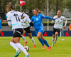 Langt innkast frá Sveindísi fellur fyrir Hildi Antonsdóttur en nær ekki að framlengja á rammann.