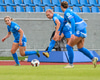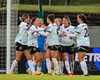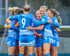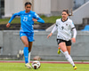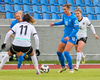 Verena Hanshaw með flottan bolta fyrir markið en Julia Hickelsberger nær ekki að skalla að marki og boltinn fer framhjá.