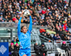 Lilli Purtscheller með skot sem Fanney Inga grípur.