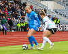 Íslenska liðið nálægt því að finna Söndru Maríu Jessen á bakvið vörn Austurríkis en Jasmin Pal gerir vel að koma út úr markinu og handsama boltann.