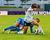 Sveindís gerir virkilega vel að vinna boltann upp við miðlínu og keyra af stað. Reynir svo að koma boltanum til Karólínu Leu en Jasmin Pal gerir vel að koma út á móti.
