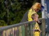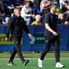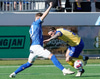 Stubbur grípur fyrirgjöf og lendir á stönginni í leiðinni. Þarf aðhlynningu. Nei, fær bara aðeins að teygja úr sér og leikurinn heeldur áfram.