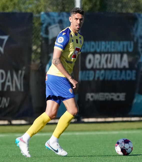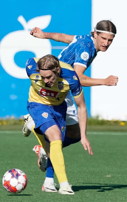 Tiago með skot fyrir utan teiginn en Steinþór Már sér við honum.