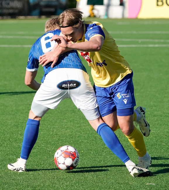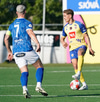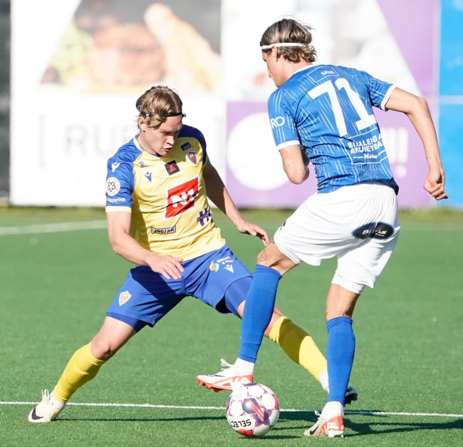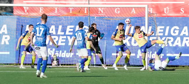 Sveinn Maargeir komst inn á teiginn og átti sendingu út í teiginn á Harley Willard sem hittir boltann ansi illa og hann fer langt framhjá.
