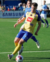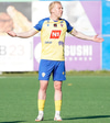 Kemst í dauðafæri. Hittir boltann illa í fyrstu tilraun en Ólafur ver boltann aftur til hans en þá skýtur hann í stöng á opið markið.