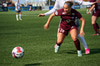 Sigdís Eva keyrir inn á völlinn frá vinstri og reynir skot en framhjá fer boltinn.