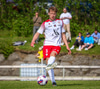 Kristófer Kristjáns með skot sem fer í Júlíus og aftur fyrir í horn.