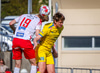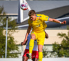 Marc tekur spyrnuna inn á teiginn sem fer beint á Alexander Má en skallinn hans fer rétt yfir mark Fjölnis.