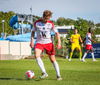 Máni Austmann með frábæran sprett upp völlinn og sækir í aukaspyrnu á hættulegum stað.