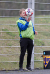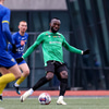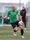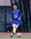 Oumar Diouck með bolta fyrir markið sem Dominik Radic nær ekki að stýra að marki.