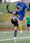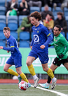 Tómas Bjarki með flottan bolta í hættusvæðið en Dominik Radic missir af honum og Rafal Stefán grípur vel inn í.