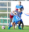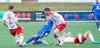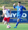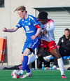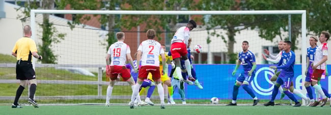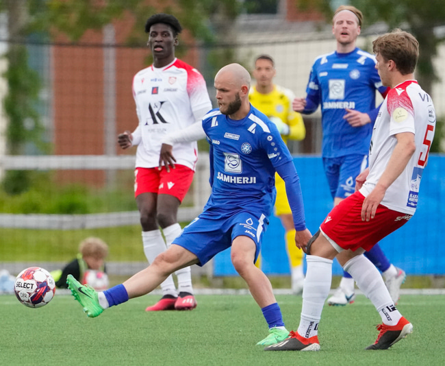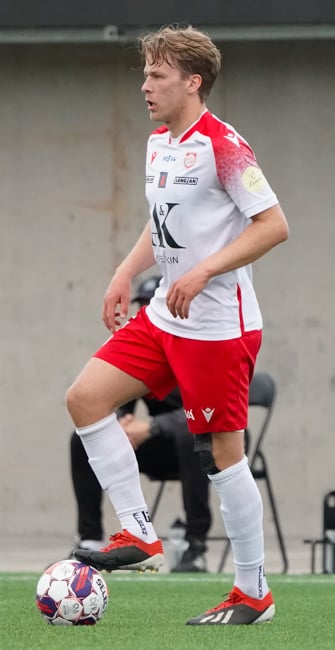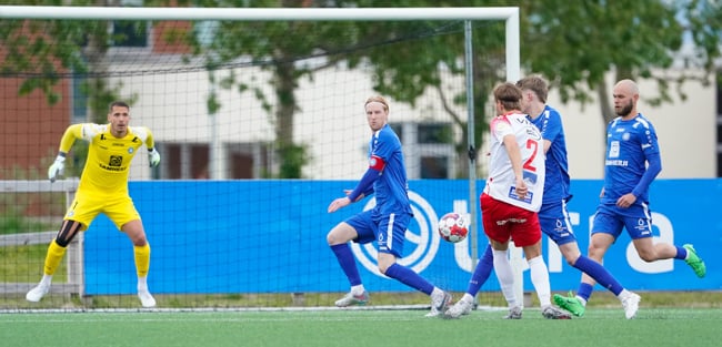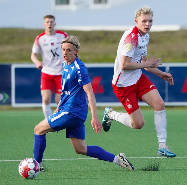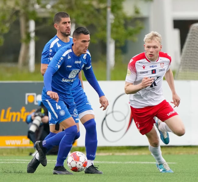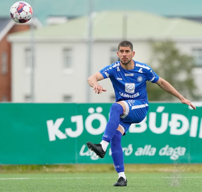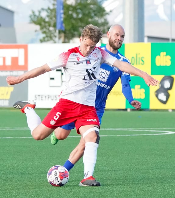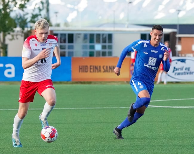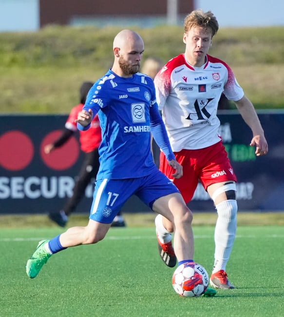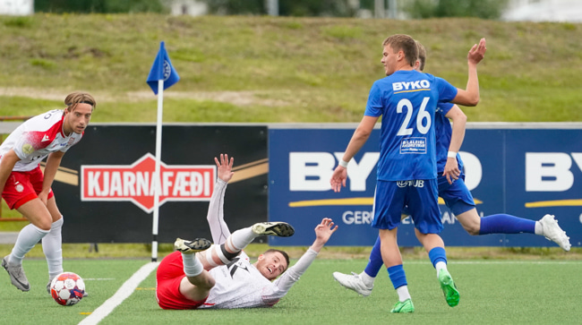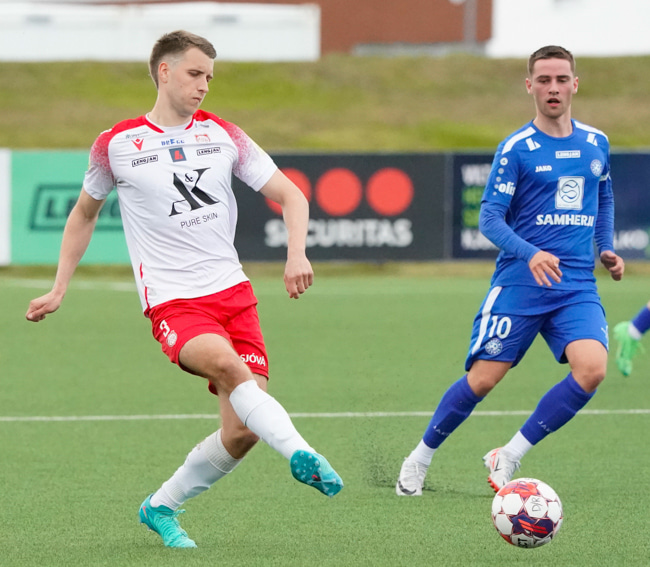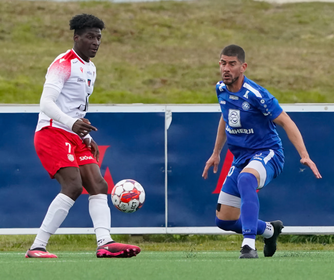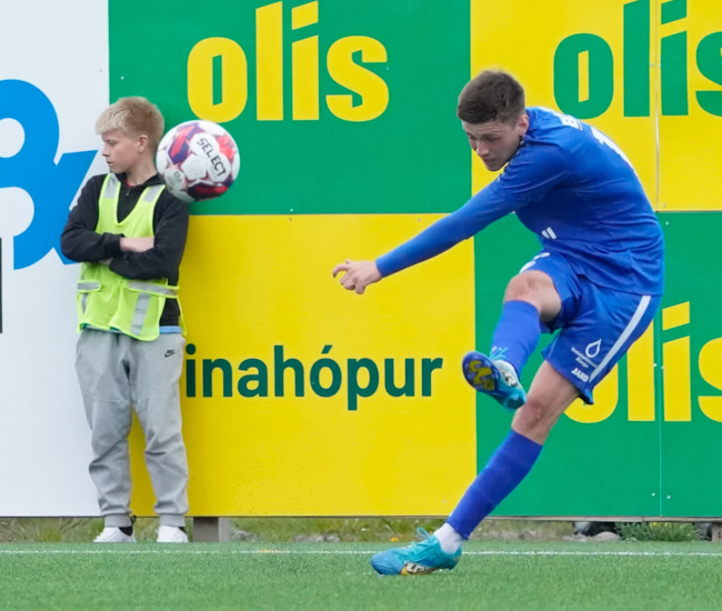 Kristófer í boltanum og mér sýnist Sigfús eiga vindhögg áður en Alexander kemur hælnum í boltann og nær góði spyrnu.