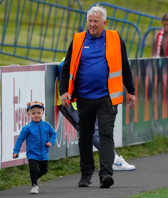 Það er frábærlega mætt og stuðningssveitirnar láta vel í sér heyra þessa stundina.